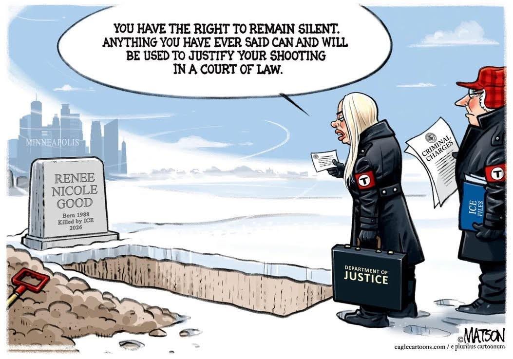 There will always be those like ICE agent Jonathon Ross who shot Renee Good in cold blood. We as resisters must work to minimize such violent encounters if we wish to live to see the Revolution blossom. We need our video cameras, audio recorders, and legal observers/eyewitnesses with us at all times to collect ample evidence of ICE and others’ wrongdoings.